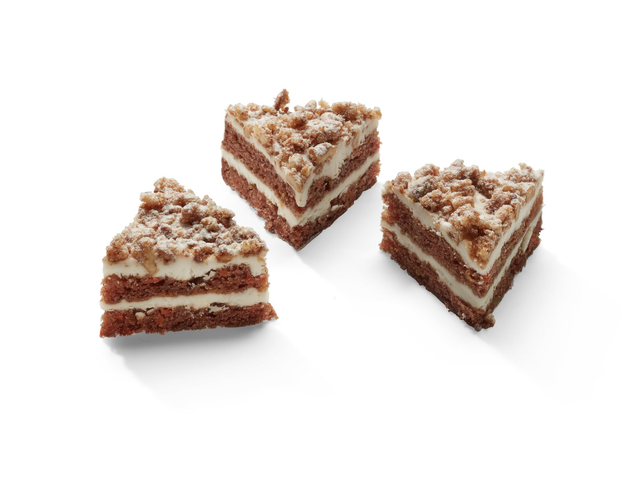 Malse wortel cake met walnoten en abrikozen- romige créme met citroen zest- walnoten granola crumble