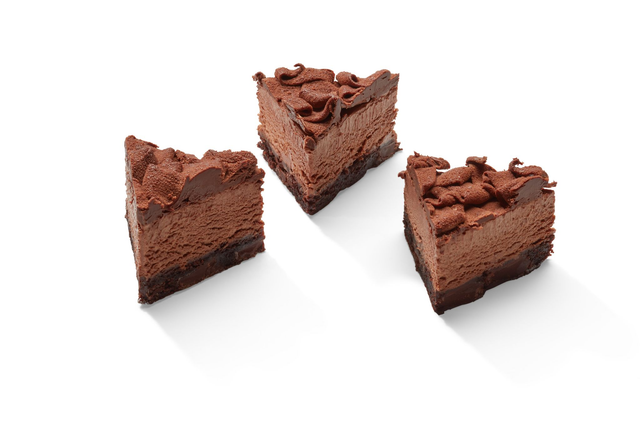 Malse chocolade brownie met stukjes chocolade, luchtige chocolademousse, pure chocolade ganache